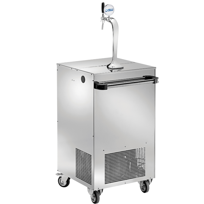 Geo wheeled is an integrated machine equipped with beer dispensing fonts and taps. It is available in two models: 50 and 75 litres, capable of dispensing up to 130 and 190 litres/hour respectively at peak performance.