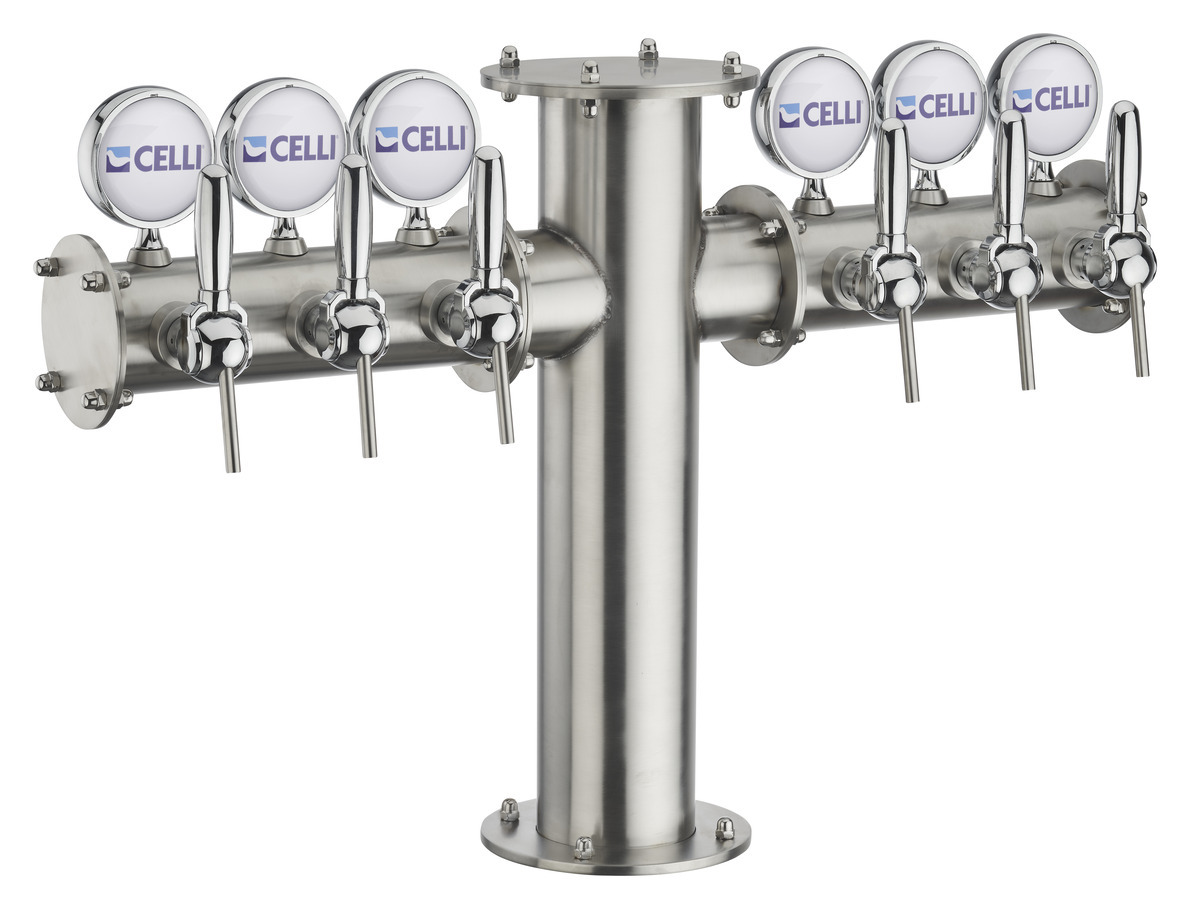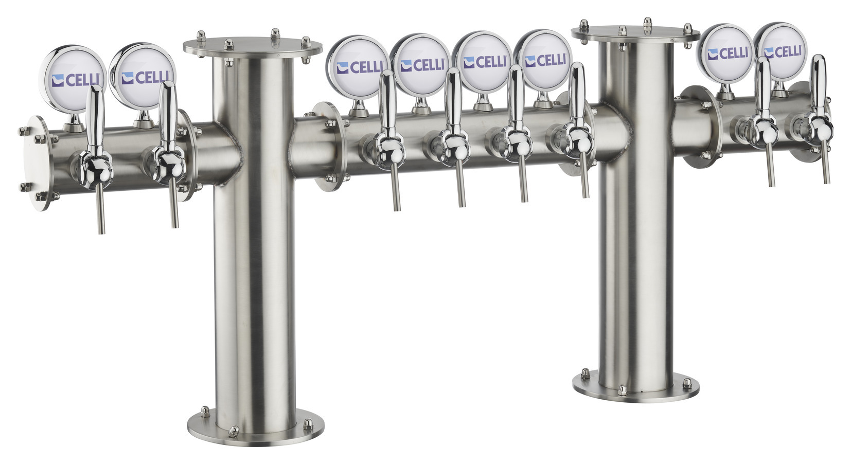 - La colonna Brewpub supporta fino a 2 rubinetti nella versione Solo (configurazione a torre), da 3 a 7 rubinetti nella versione T-Bar e da 8 a 12 rubinetti nella versione a Ponte per l'erogazione di birra o vino